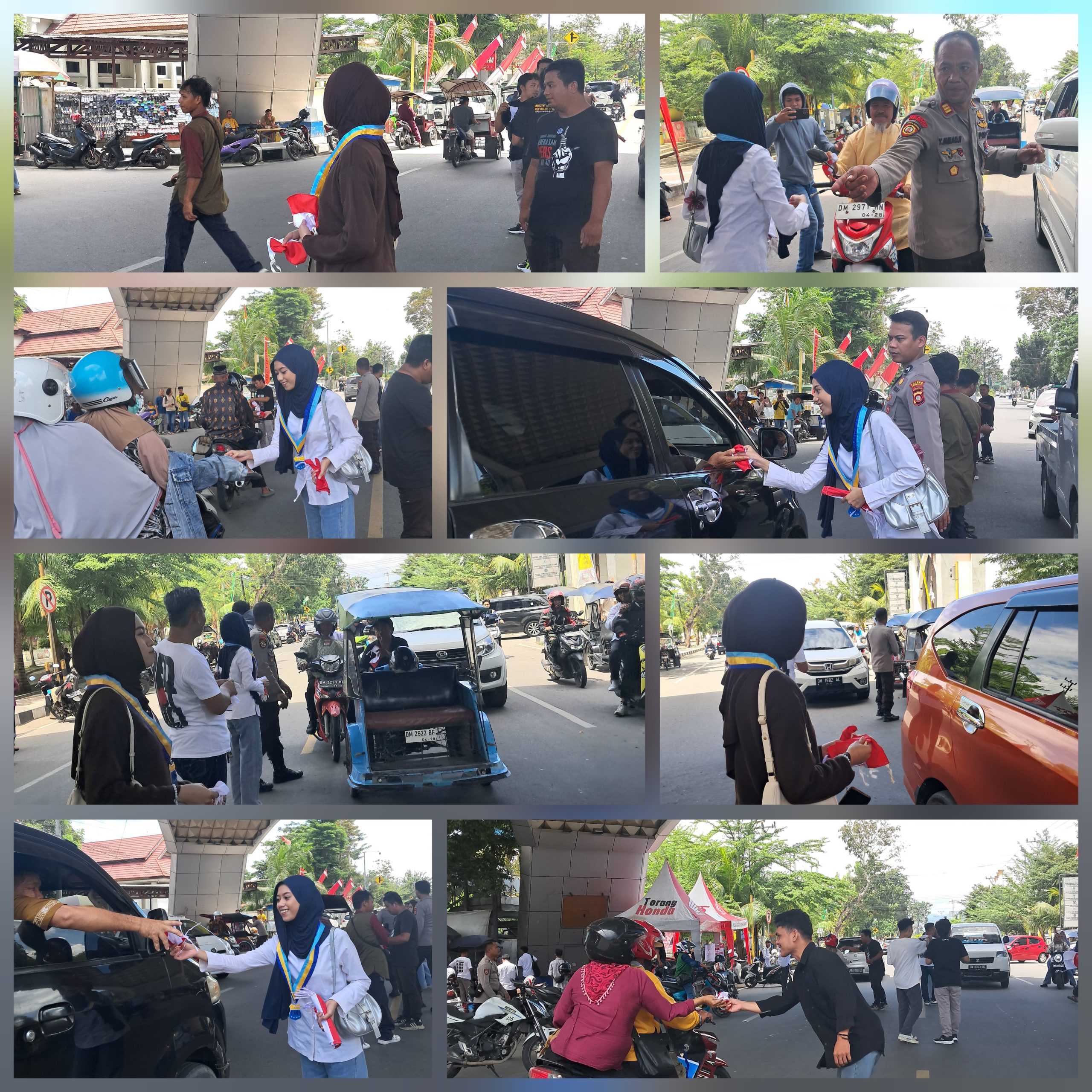 Pada Jumat siang yang cerah, sekelompok mahasiswa bekerja sama dengan para wartawan, turun langsung ke jalan, membagikan bendera Merah Putih kepada para pengguna jalan. Aksi ini bukan sekadar pembagian simbol, melainkan panggilan jiwa dengan ajakan tulus untuk kembali menghidupkan semangat cinta tanah air dalam kehidupan sehari-hari, menjelang peringatan kemerdekaan yang sakral.